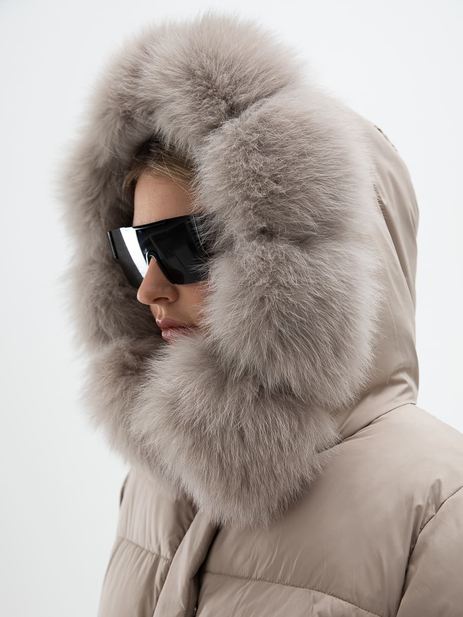 Вид ворота - капюшон, отделка мех песца